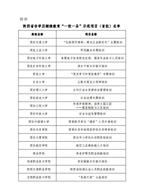 2022年陕西省高等继续教育学会组织开展非学历继续教育“一校一品”项目评选活动,全省共有25家高校的41个项目参评。经陕西省非学历继续教育“一校一品”项目专家组评审,近日确定西安交通大学等高校的18个项目入选陕西省非学历继续教育“一校一品”首批示范项目,今年会官网申报的“航空工业高技能人才培训”项目成功入选。