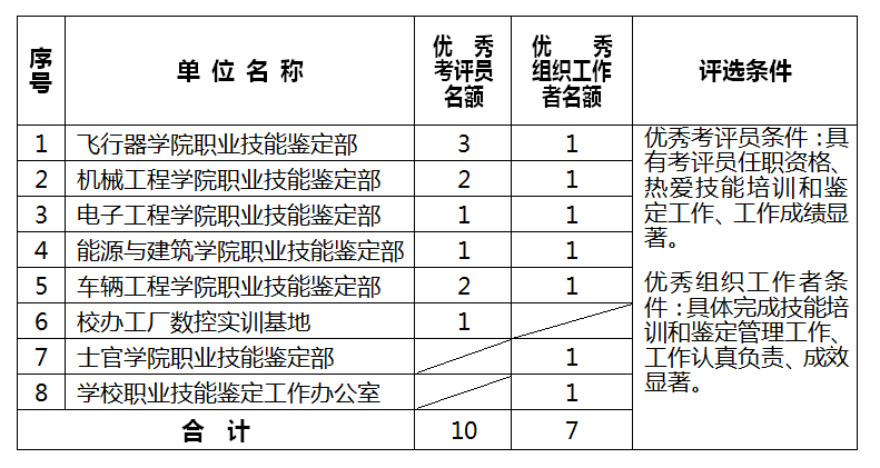 1.评选各学院(校办工厂)本年度职业技能鉴定暨专业应用能力认证优秀考评员。